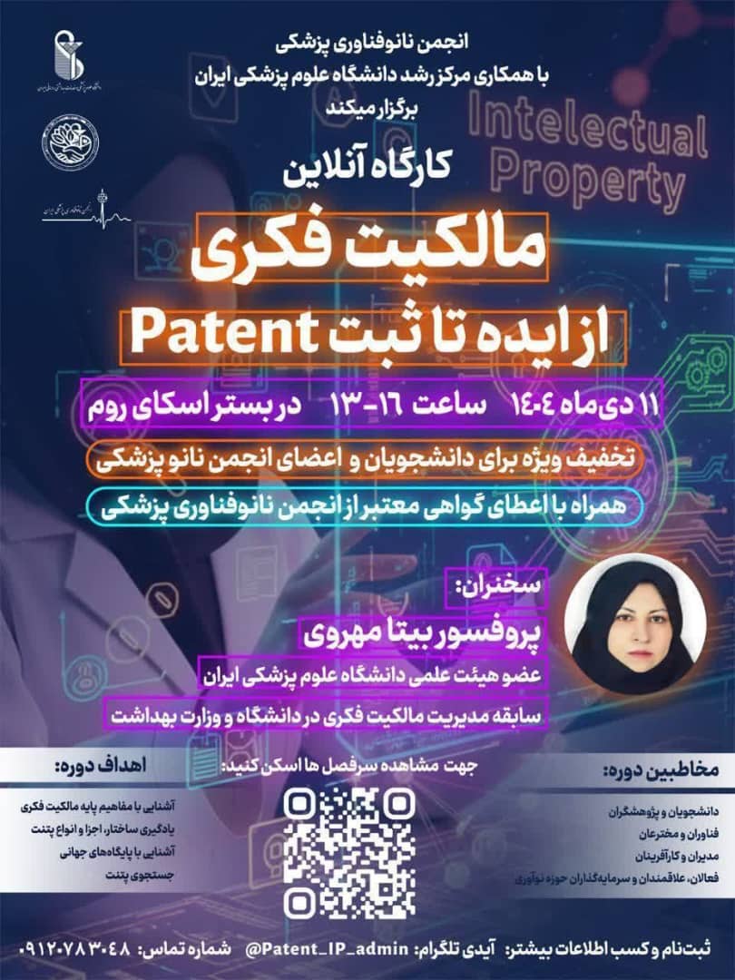 علاقهمندان جهت ثبتنام و کسب اطلاعات بیشتر میتوانند از طریق شناسه @patent_IP_admin و یا با شماره 09120783048 تماس حاصل نمایند.